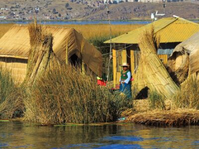 | Vanaf de haven in Puno bezoekt u de Uros-eilanden. De Uros vormden een oude stam die zich probeerde te isoleren van de oorlogszuchtige Colla’s – en later van de Inca’s. Ze trokken het Titicacameer op en bouwden drijvende eilanden van totora-riet om op te wonen. Vandaag de dag leven er nog steeds enkele honderden leden van de Uros-stam, tegenwoordig allen Aymara sprekend, op de eilanden, waar huizen, wachttorens, kerken en boten gemaakt zijn van riet. De eilanden moeten continu worden verzorgd: terwijl het riet van onderuit wegrot, worden er bovenop steeds nieuwe lagen geplaatst. Daarna gaat u richting de eilanden Amantaní en Taquile, op ca. 3 uur varen van Puno. De inwoners van deze eilanden leven nog steeds op een traditionele manier, bijvoorbeeld zonder gemotoriseerd transport. Op het schilderachtige Amantaní zult u bij een traditioneel gastgezin overnachten en een schitterende zonsondergang beleven. Het zal gewaardeerd worden als u wat groente en fruit meeneemt, aangezien dat schaars is op het eiland. De volgende morgen vaart u naar de nabijgelegen highlight Taquile met zijn traditionele textielarbeid. Mannen lopen hier met breinaalden rond en vrouwen weven kleurrijke kledij, waaruit u de sociale status en de burgerlijke staat van de drager op kunt maken. Na een mooie wandeltocht en een lunch (niet inclusief) vaart u terug naar Puno. |
